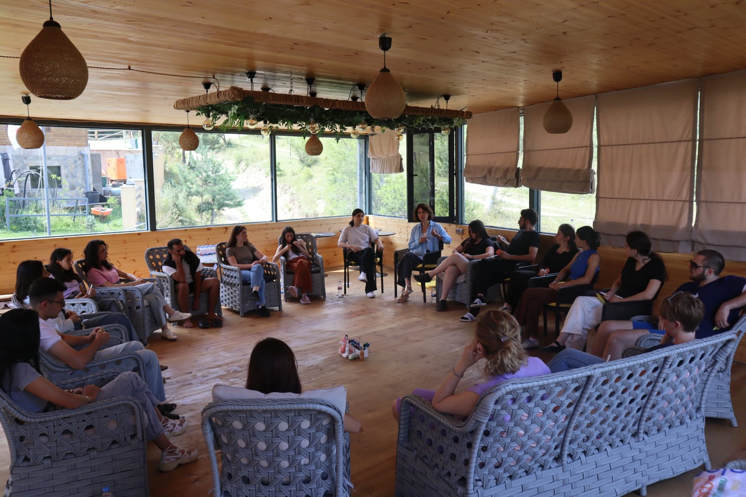 Elene Chkhaidze (GUQ’25) designed and implemented the Youth Leaders Exchange Program (YLEP), a five-day peacebuilding camp held in Solo Grand Boshuri, Georgia (July 25–30). It brought together 15 youth – Armenians, Azerbaijanis, and Georgians – from across the country to participate in dialogue, trust-building, and nonviolent communication workshops. Using interactive and creative methods, the camp fostered intercultural understanding, equipped participants with practical skills, and laid the foundation for cross-community cooperation in the South Caucasus. The camp created a neutral space where barriers could begin to break down. Elene’s partner, The 16th Element, provided experienced facilitators who led workshops on dialogue and conflict resolution. Storytelling, artistic expression, and role-playing exercises gave participants the chance to share personal experiences, while outdoor team-building activities built trust and cooperation.